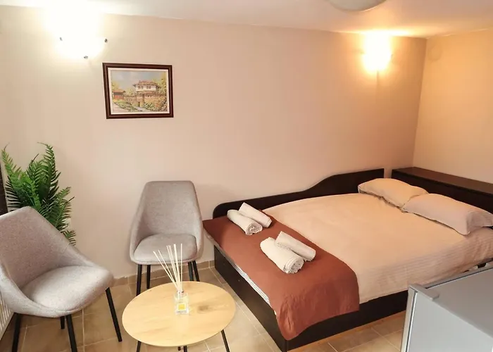 The 16 m² Tsar Kaloyan Guest House Near Tsarevets Veliko Tarnovo lies in the Samovodska Charshia district and offers swift access to the Asen's Monument, which is a mere 5 minutes' stroll away.